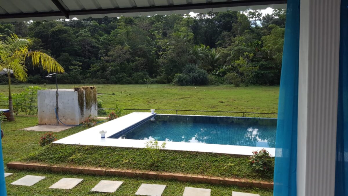 Family cottage with three sleeping accommodations: 1 double bed and 1 single bed. The bedroom is equipped with air conditioning. Open bathroom with a shower, sink, and toilet. Offers an unobstructed view of the rice field and is directly adjacent to the swimming pool.